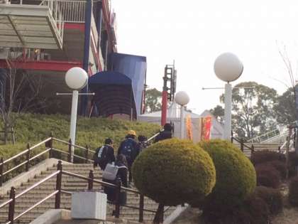 クラス写真を撮った後、グループごとに出発。楽しみだなーー。ワクワク!