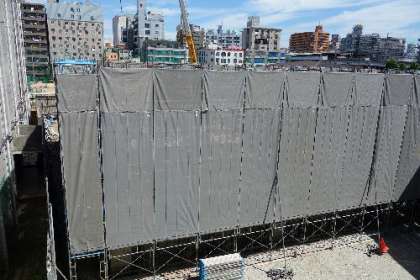 校舎のほうは幕でおおわれてしまって…中が見えにくくなりました。
