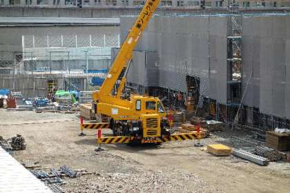 2階部分の作業がかなり進んできています。渡り廊下も天井部分の枠の設置をしていました。