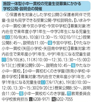 大阪市のHPや各区の情報紙にも小中一貫校のついてのお知らせが出ています。