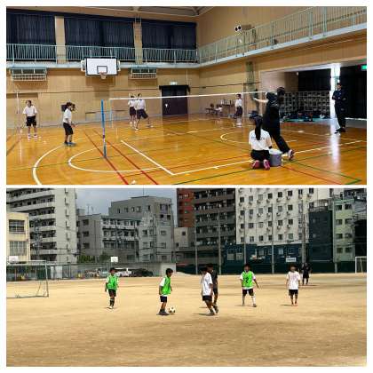8月1日、今宮中学校部活動の様子です。グランドではサッカー部の7年生が、体育館ではバドミントン部が活動しています。8月に入っても暑い日々が続きますが、子どもたちは元気に頑張っています。