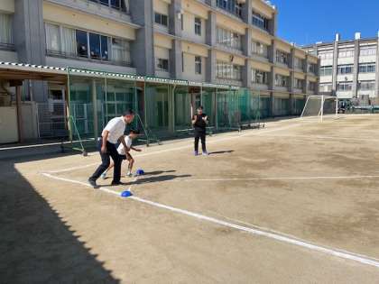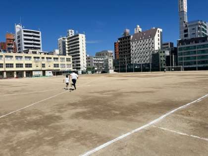 明日、8月7日(木)ヤンマースタジアム長居で行われるスポーツ交流大会に3名の児童が参加します。今日も入念に準備体操をしたあと、100m走の練習に励んでいました。最後に教頭先生と一緒に走り、児童は好タイムでゴールすることができました。明日の本番でも頑張ってほしいです。