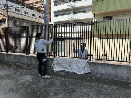 8月18日と19日に、本校の西側の外柵を塗装していただきました。