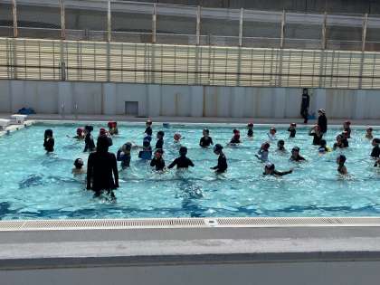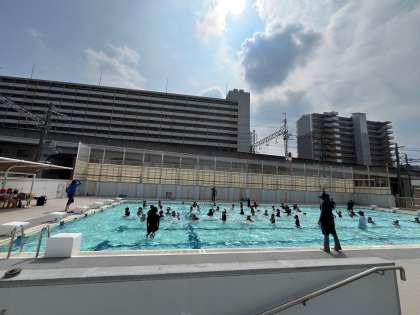 久しぶりのプールはいかがですか?みんなと入るプールがとても楽しいようで、元気よく音楽に合わせて準備体操をしたり、潜ったりしていました。