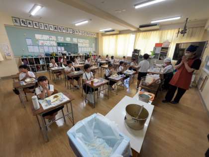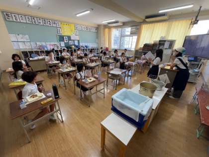 子どもたちはどのメニューもおいしくたくさん食べていました。ぶどうゼリーのおかわりじゃんけんは白熱した戦いとなっていました。