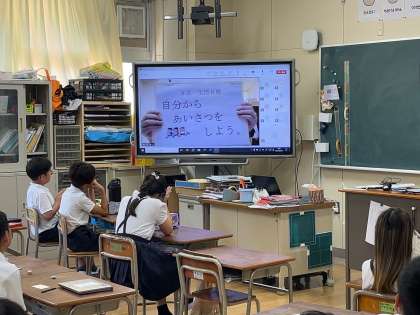 2学期最初の児童朝会は教頭先生からのお話でした。夏休みにあった地域の盆踊りでは、たくさんの子どもたちが参加して、地域の方々と交流していたことがとてもうれしかったことや、地域の皆様が子どもたちのためにいろいろなお店を出してくれていることに皆さんはとても愛されているのだなあ、と思ったことなどを話されました。9月15日(月)は敬老の日です。地域の皆様に感謝の気持ちやいつまでも健康で元気に過ごしてほしいことを伝えられるといいですね。最後に生活目標についてのお話がありました。今月は「自分からあいさつをしよう」です。自分から積極的に、地域の皆様、友だちや先生方に元気なあいさつをしていきましょう。