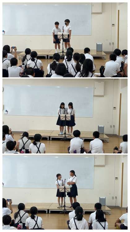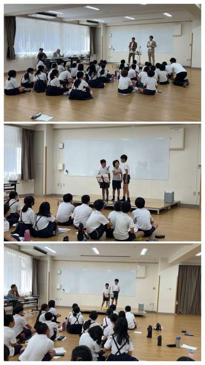 緊張していましたが、堂々とした態度でしっかりとボケとツッコミをしていました。本校の先生方も一緒に発表をしていました。