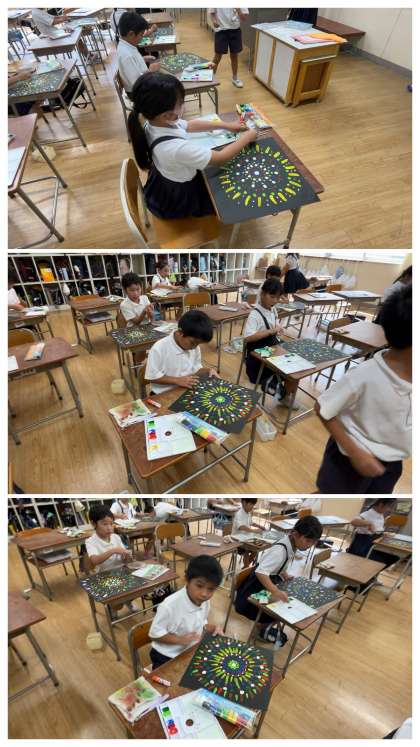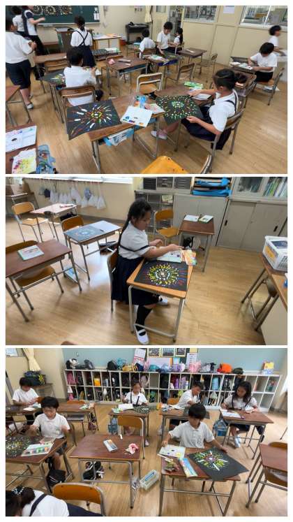 9月3日の3時間目は、図工の授業で花火を描きました。