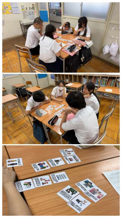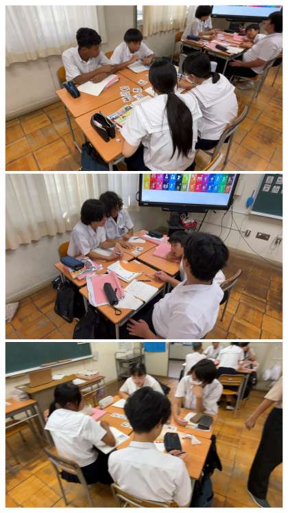 子どもたちは、各班で様々な意見を出し合い、3つにわけました。「どうしても分けれない」「とても難しい」と言いながら、どの班も真剣に意見交流をしていました。