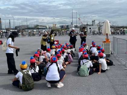 学校を出発して、大阪メトロ花園町から夢洲まで移動して、ようやく万博会場に到着しました。