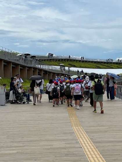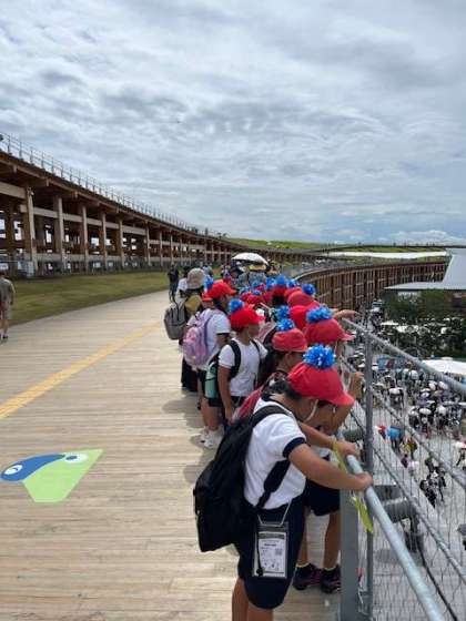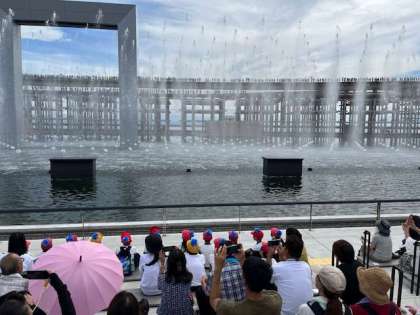 大屋根リングの上を歩いたり、リング前で噴水ショーを見ました。今から帰ります