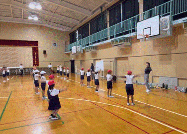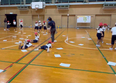 子どもたちは、恥ずかしがることなく友達と一緒に様々な動きを表現していました。また、自分が気に入った動きをみんなと共有することで、より一層、表現の幅が広がっていました。