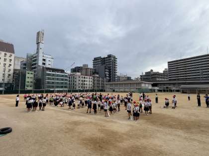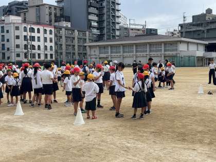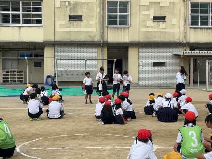 9月25日の児童集会は、運動場で「集会委員会からのお願いです」をしました。