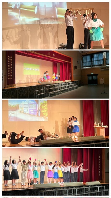 7年生の演劇「SNS戦隊マナー5やでぇ〜」の様子です。映像を上手に取り入れ、SNSの使い方について考えることができる内容でした。