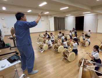 最後に、みんなでチャンゴを演奏しました。ほとんどの子どもが初めて触る楽器でしたが、民族講師の先生の音頭に合わせて、楽しく上手に演奏することができました。