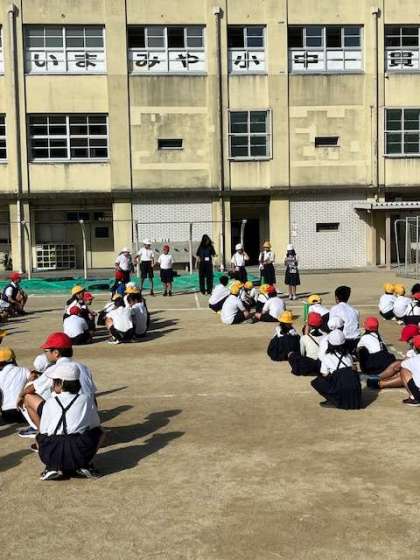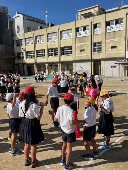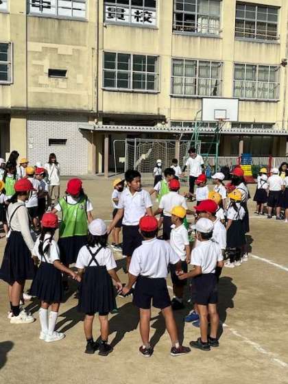 今日の児童集会は、「キャキャキャ〜、キャッチ??」ゲームでした。たてわり班で円になり、互いの指をつかみ合っていました。さわやかな秋空の下、子どもたちの笑い声が響き、楽しく活動していました。