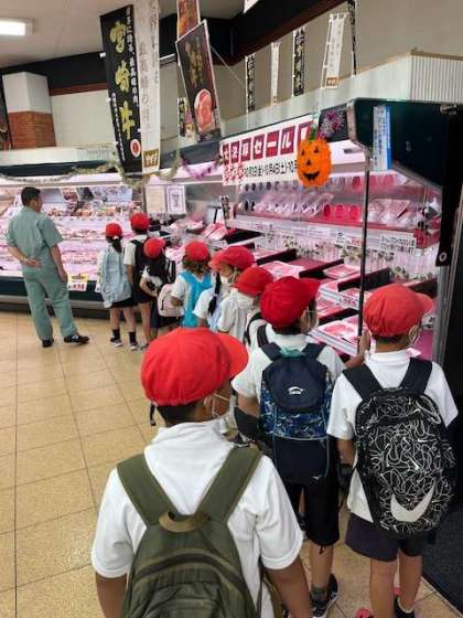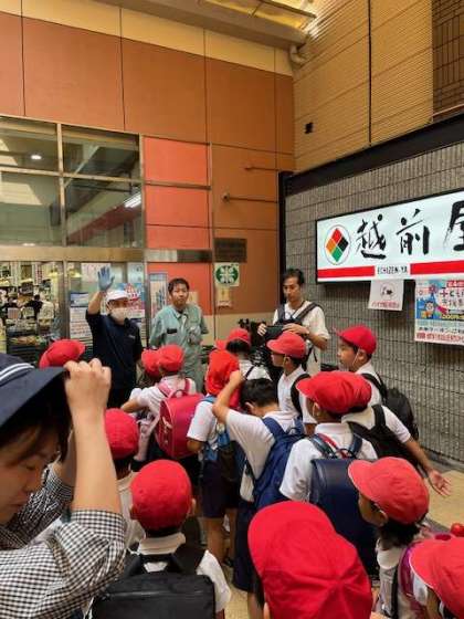 越前屋さんに到着しました。これから店員さんに案内していただきます。「よろしくお願いします」と元気にあいさつしました。