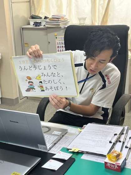 次に、10月の生活目標が発表されました。気温は少しずつ下がってきていますが、熱中症には気をつけて、休み時間には運動場でみんなと楽しく遊びましょう。