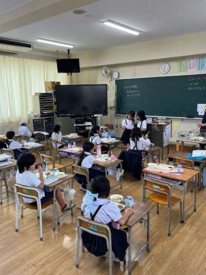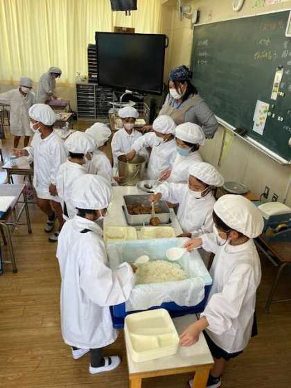 子どもたちは、給食の準備がとても早くなりました。みんなで協力して仲良く準備ができます。日直と元気にいただきますをしていました。