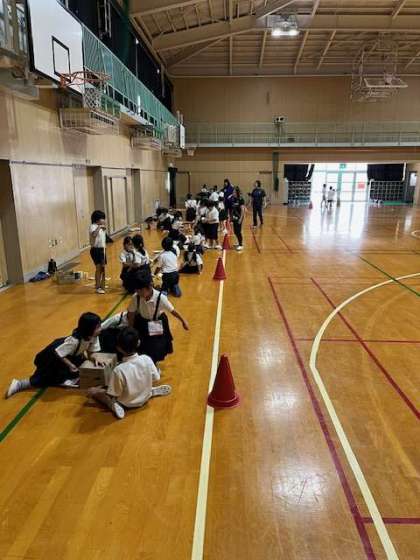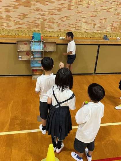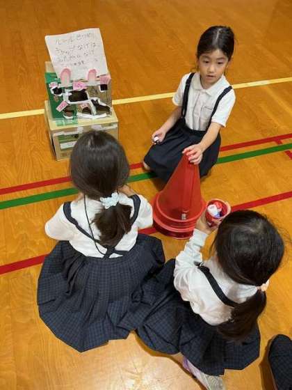 ?2年生が楽しいおもちゃコーナーを作っています。1年生が楽しく遊べるように上手にお世話をしています。