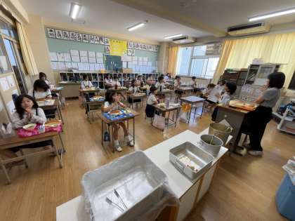 まぐろのオーロラ煮は人気のメニューの一つで、子どもたちはたくさんおかわりしていました。