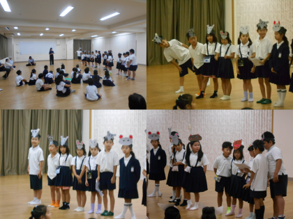子どもたちは、それぞれの場面を読み込んで、どんなふうにしゃべったらいいかなどと考えて、強く言ったり、かわいく言ったりとそれぞれの役割を上手に演じていました。