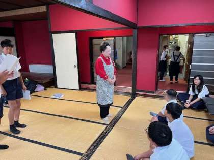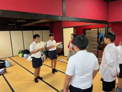 閉舎式の様子です。2日間お世話になった「海月」の大女将から、病気や事故が無くて良かった事、中学生に向けて頑張って欲しい事の2つのお話しがありました。