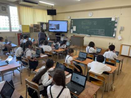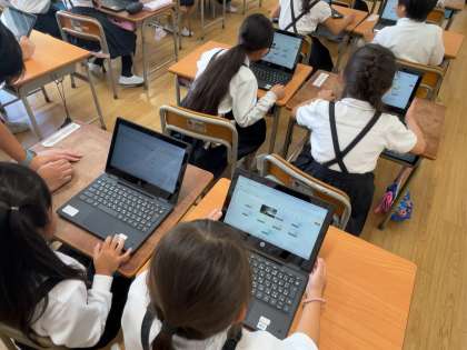 10月14日の5時間目は、新しい学習者用端末を使って、Teamsのオンライン会議の接続テストをしました。