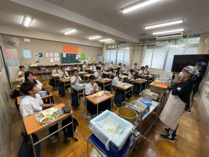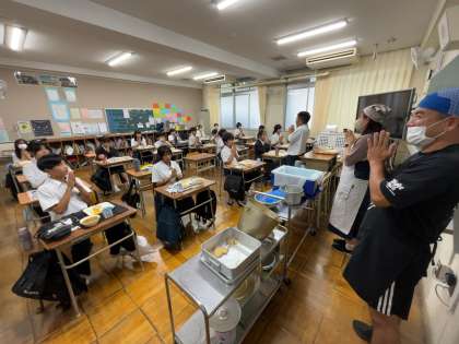ポークカレーライスは人気のメニューの一つで子どもたちはこぞっておかわりをしていました。また、黄桃の缶詰も人気でおかわりのじゃんけんが白熱していました。
