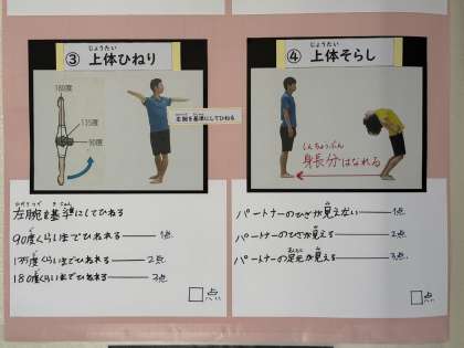 みなさんは何点でしたか?体が硬い人は「いまみや体操」で体を柔らかくしていきましょう。