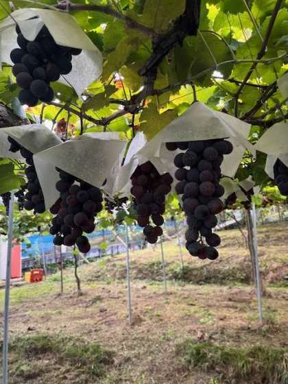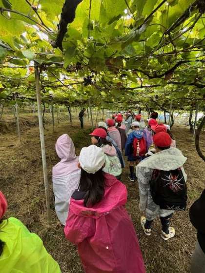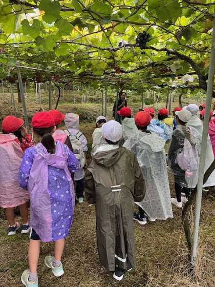 ぶどう畑に到達しました。美味しいぶどうを作るために、いろいろな作業があることを教えていただきました。