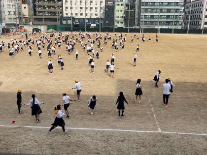 子どもたちは、様々な跳び方にチャレンジしたり、自分ができる跳び方を少しでも多くの回数を飛ぶ挑戦をしたりしながら、なわとび集会に取り組んでいました。