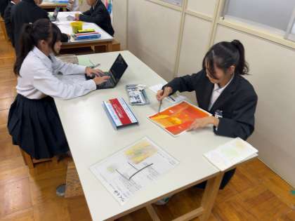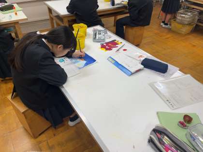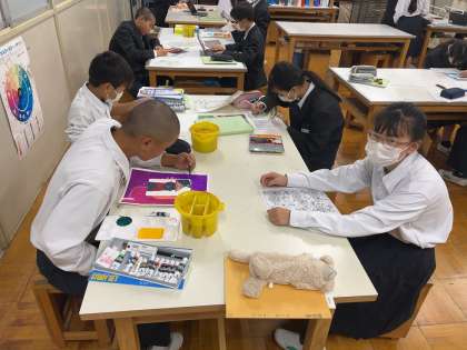 7年生の2時間目は、「つくも神〜あなたと共に〜」として、つくも神のイメージを描きました。