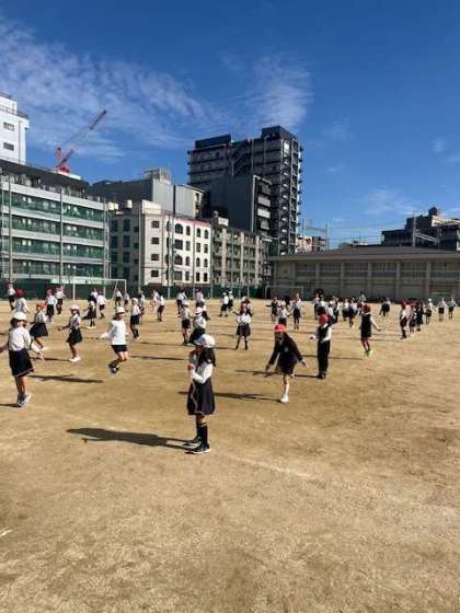 全校なわとび集会を行いました。前跳び、後跳びなど、子どもたちは音楽のリズムに合わせてなわとび遊びを楽しんでいました。秋空の晴天の下、気持ちよく運動することができました。