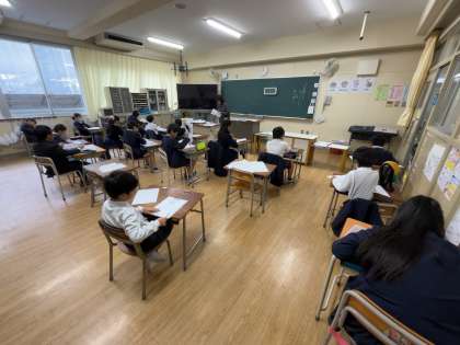 11月28日の1時間目は、12月2日、3日に実施される経年調査の練習問題を行いました。