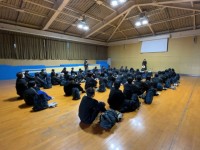 本日の献立は、コッペパン、ソフトマーガリン、鶏肉ときのこのシチュー、きゅうりのピクルス、パインアップルの缶詰、牛乳です。小学生は、パインアップルの缶詰が富有柿になります。