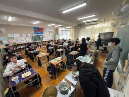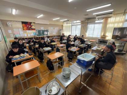 子どもたちは、どのメニューもおいしそうにたくさん食べていました。中学生の子どもたちはかやくご飯でしたので、よりたくさんおかわりをして米びつが空っぽになっていました。