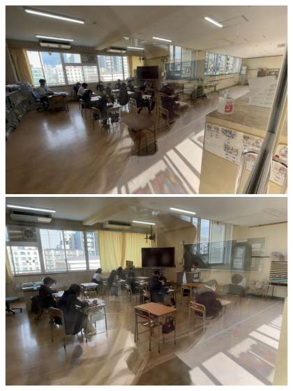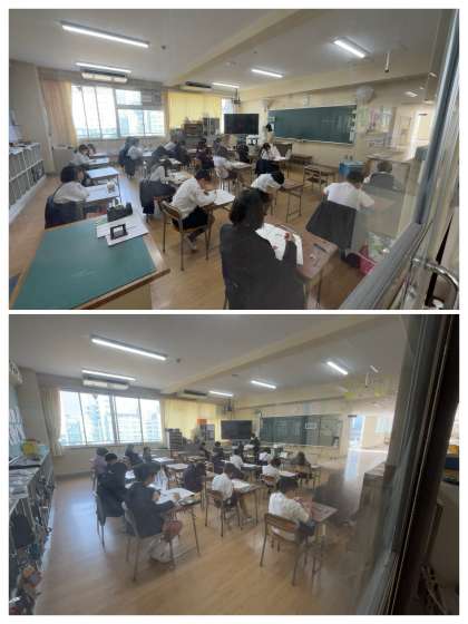 12月3日は大阪市小学校学力経年調査の2日目です。2時間目は算数、3時間目は理科、5、6年生は4時間目は英語を行います。子どもたちは真剣な表情で経年調査の問題を解いていました。