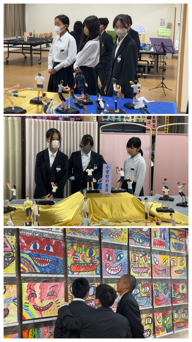 12月18日の朝の時間に、7年生が小学校の作品展を見学しました。