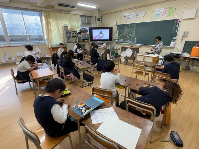 12月22日の5時間目に、モールを使ってクリスマスリースを作りました。