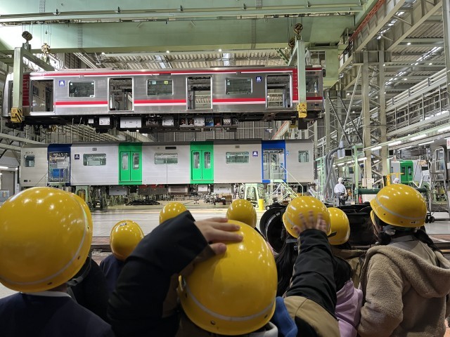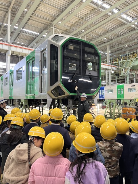 2年生は緑木車両工場に社会見学に行きました。電車の車輪や座席を車両に取り付けたり、電車が故障しないように点検したりするところを見学しました。工場の中を係の人に案内していただきながら、説明を聞くことができました。間近で見る電車の迫力に子どもたちはびっくりしていました。