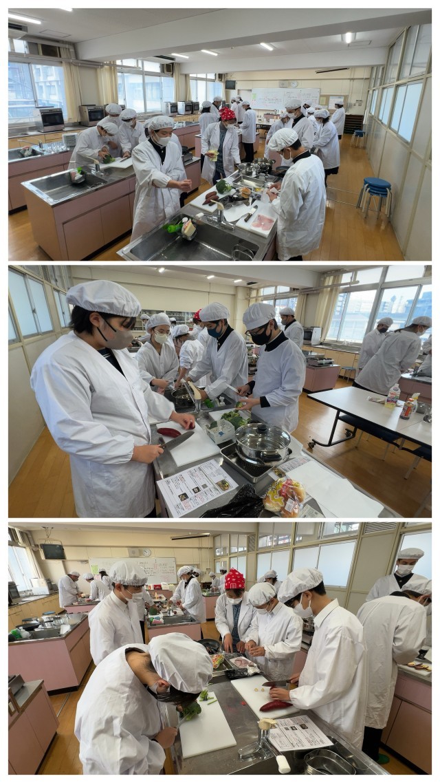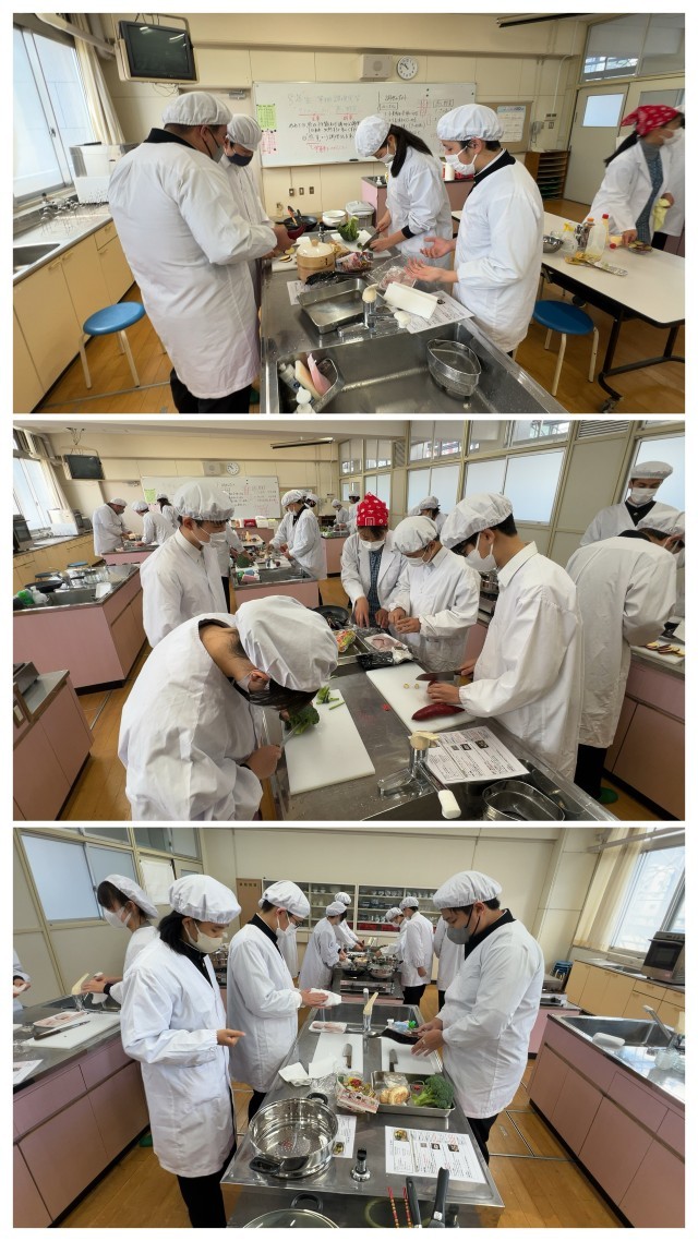 1月22日の3・4時間目に3回目の調理実習をして、「タラのムニエル」「蒸し野菜」を作りました。