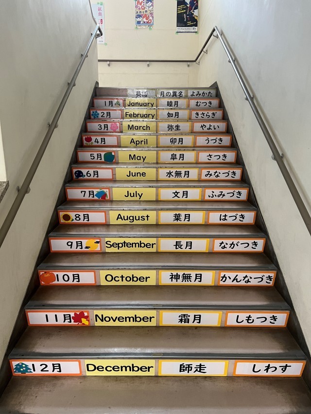 中学校校舎の1階から2階への階段にご覧のような掲示物ができました。