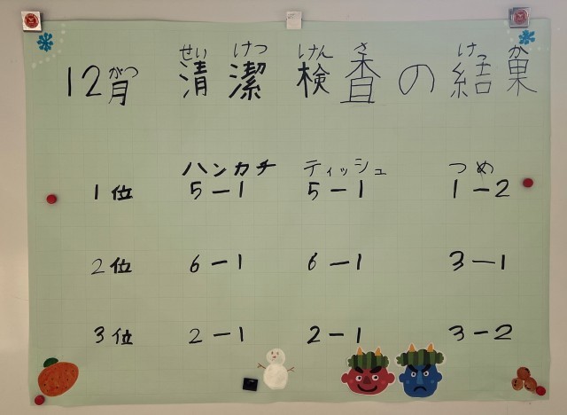 清潔検査 12月の結果