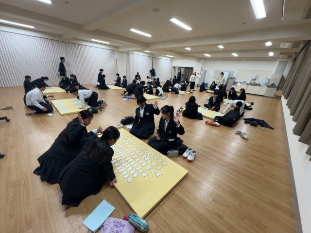 子どもたちは、学年の先生が和歌を読み上げると、一生懸命に札を探して取りあっていました。