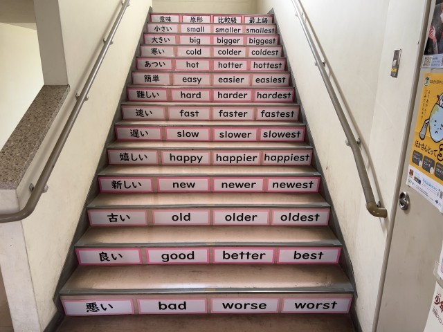 中学校校舎の2階から3階への階段にご覧のような掲示物ができました。