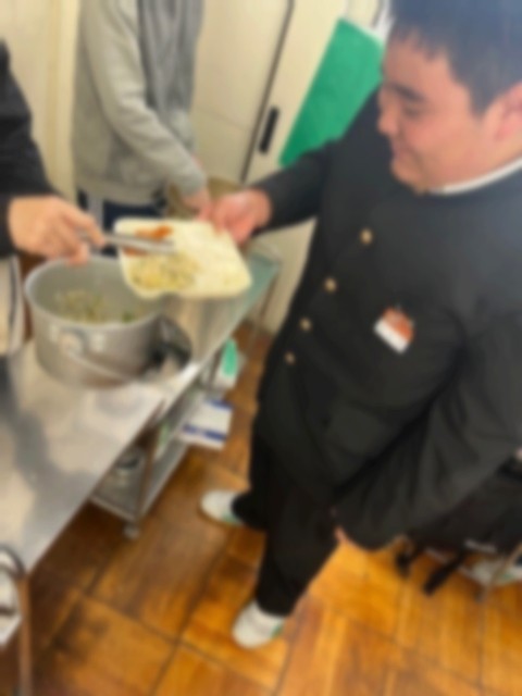甘辛く味付けされたヤンニョムチキンはとてもごはんが進んでおり、たくさんの生徒がお代わりをしていました。
