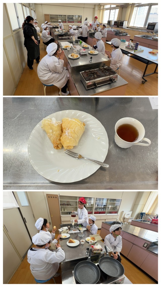 2月4日の2・3時間目に、「友だちとティータイムを楽しもう」というめあてに沿って、クレープを作りました。