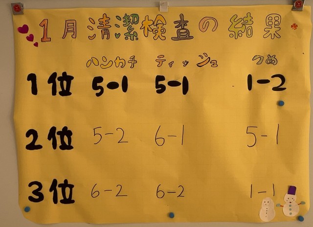 みなさん、引き続き、清潔なくらしができるように心がけましょう。