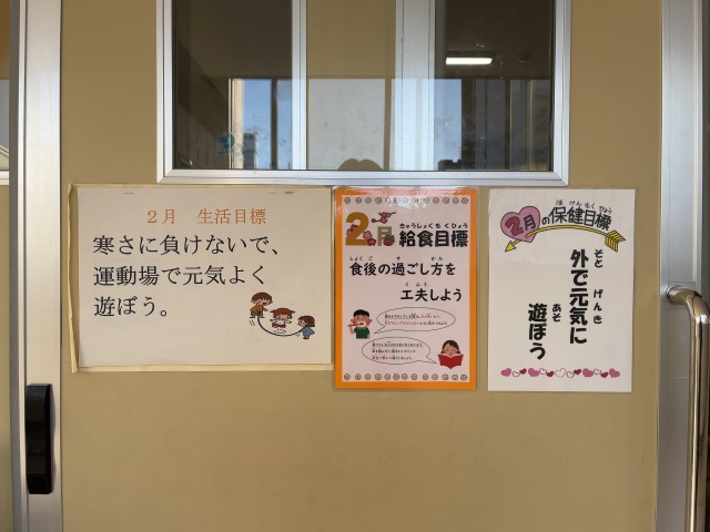 生活目標は「寒さに負けないで、運動場で元気よく遊ぼう」